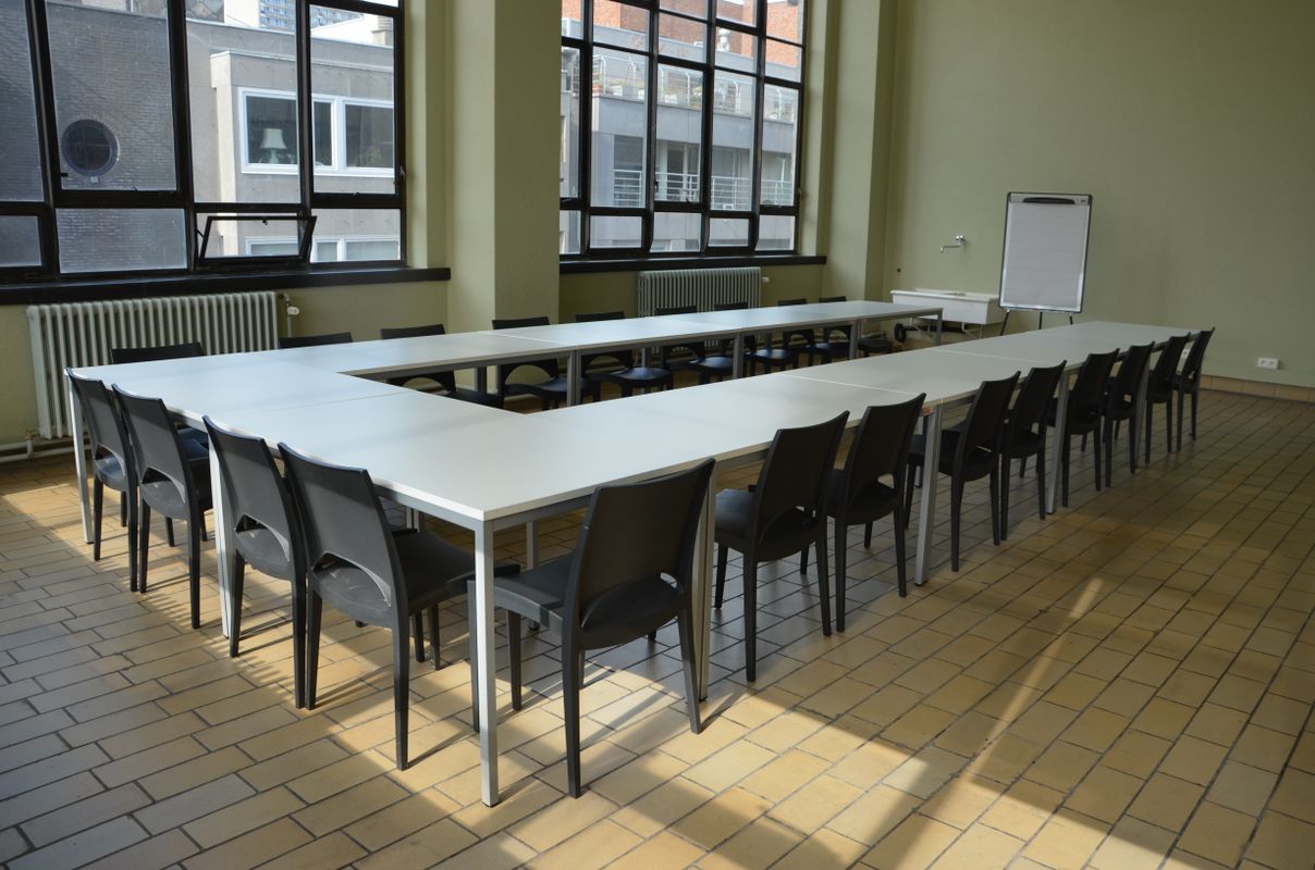 This atelier is often used as a meeting room, but lectures or workshops can also take place there. With tables, chairs and mobile technical equipment, the room can be arranged according to your needs and wishes.