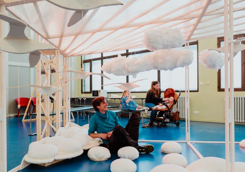 Kunstenaar Maarten Jolie is dit jaar de maker van Voelgewoel. Het is de eerste keer dat hij iets maakt voor baby’s en peuters. “Ik heb wel al eens een schoenenkast gebouwd voor de kleuterschool van mijn kinderen, maar dit is toch iets anders”, lacht hij. Hij werkte jarenlang mee aan het CAMPUSatelier in Gent, waar gebouwd wordt aan de publieke ruimte. “Ik had dus wel al zeker wat ervaring met werken voor jonge kinderen, maar dit is een uitdaging. Ik denk na over wat mijn kinderen leuk vonden – al zijn ze nu wel al tien en twaalf jaar.”