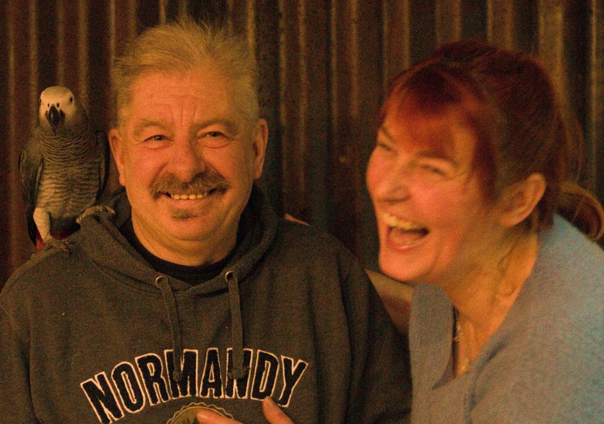 Marzena vult aan: “Je krijgt er zoveel liefde van terug. En ja, hij kan ook praten. Hij zegt de woordjes ‘broem broem’ als het over moto’s gaat, lekker, chips… Hij fluit ook liedjes, zoals van The Scorpions. Eigenlijk heb je praters en fluiters bij de papegaaien, hij doet het allebei.” En een papegaai is een metgezel voor een hele lange periode. Dżo dżo is nu vier jaar, maar de vorige papegaai van Franky werd 56 jaar.