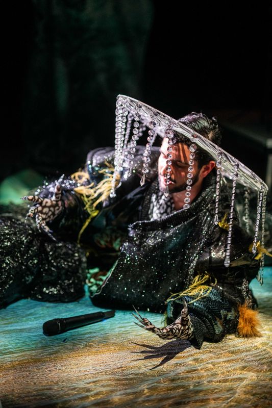 A.L.: “Dank je. Normaal gezien ontwerp ik de kostuums voor mijn shows. Maar omdat deze show zo groots is, en ik dus niet alles zelf kon doen, heb ik een designer aan boord gehaald, Teun Seuren. Het is zijn werk. Al heb ik wel mee beslist over het kleurenpallet en heb ik hem ook thematisch op weg gezet. Het moest draaien rond water en vloeibaarheid. En volksdansen. Ook het decor heeft die insteek. Alles moest mooi blenden samen. En da’s goed gelukt.”