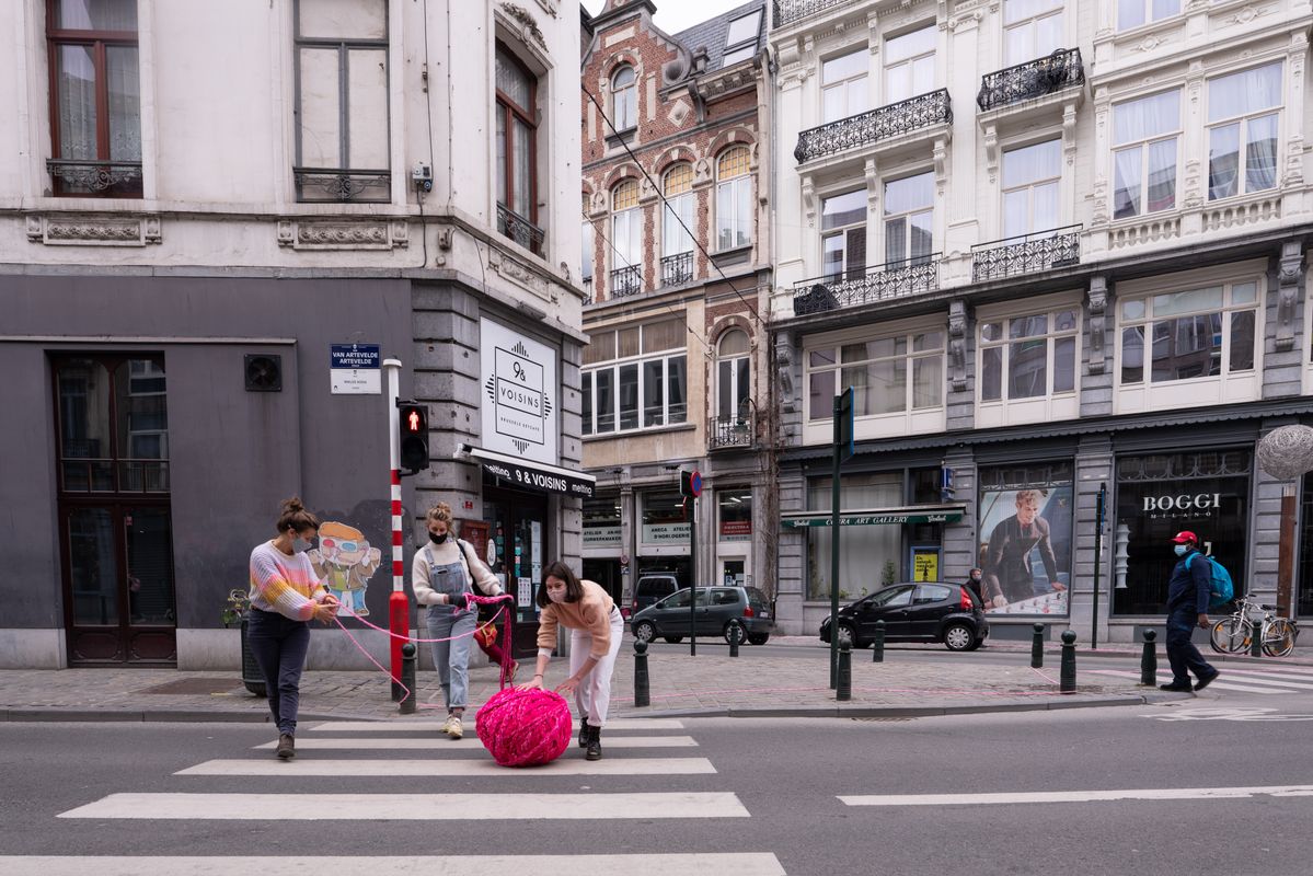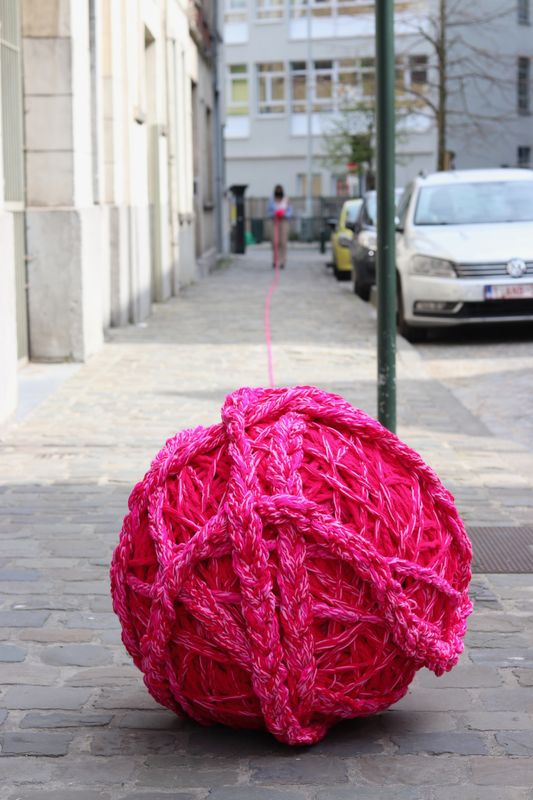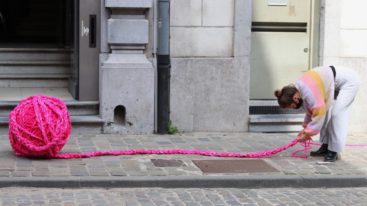 Na een periode van afstand en isolatie ging Collectief Elan(d) op zoek naar contact. Ze trokken de straat op met een roze, wollen draad. Op magische wijze bracht die mensen in beweging, verweefde hen, knoopte hen aan elkaar, en zo ontstond gaandeweg een universum met veel wol en weinig woorden.
