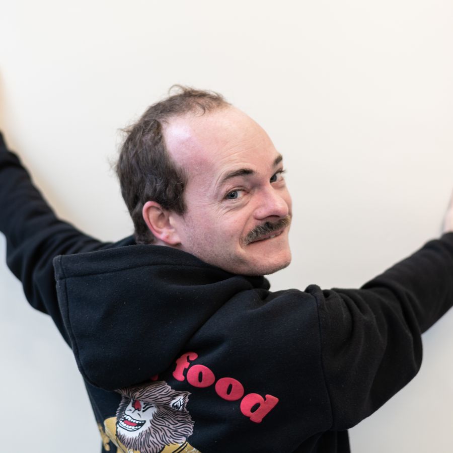 Theatermaker Maxim Storms werkt aan zijn nieuwe voorstelling in één van onze ateliers. Hij zit in de beginfase van het proces. Ondanks de boutade hierboven is hij mét een idee naar Oostende gekomen: ‘de laatste’ spelen. Een wezen dat overblijft, dat zijn bestaan wil verbouwen op zoek naar geborgenheid.