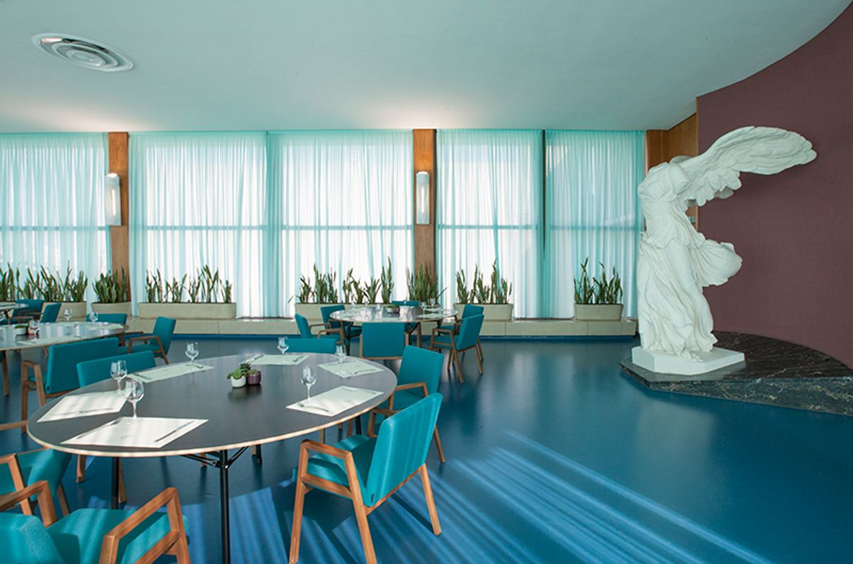 The large sun terrace, the large windows, the original panelling and the reproduction of "The Victory of Samothrace". Panorama is ideal for networking events, family celebrations, ceremonies, dinners, receptions and award ceremonies.